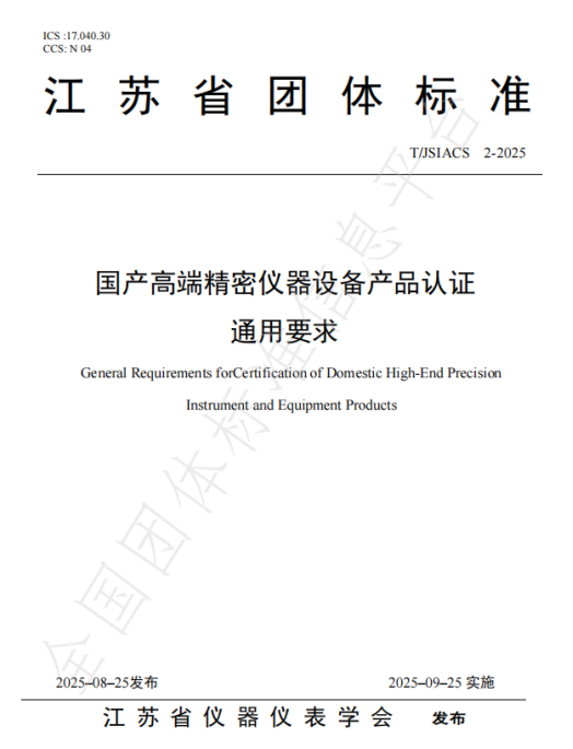 江蘇省儀器儀表學會發布《國產高端精密儀器設備產品認證通用要求》團體標準